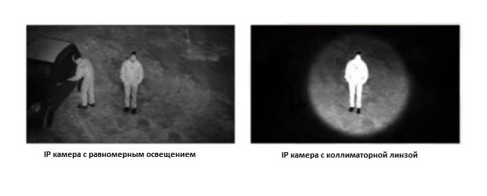Дальность подсветки бюджетных моделей может не уступать более дорогим профессиональным устройствам слежения. Причина кроется в использовании различиях принципов организации подсветки и технологий реализации. Часто для увеличения характеристики используется коллиматор – особая система линз для корректировки направления светового потока в оптической оси. Для увеличения дальности подсветки в этом случае сокращается угол обзора. Еще одним недостатком технологии является ухудшение информативности видео из-за сильной засветки объектов в кадре.