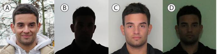 B. хотя фронтальный источник света освещает лицо с силой в 350 люкс, фоновая засветка имеет значительно большую интенсивность, в результате чего идентификация становится невозможной (фотографы называют данную ситуацию «контражур»);