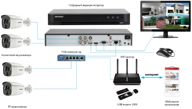 Любой видеорегистратор можно подключить к сети интернет используя обычный роутер и получить к нему удаленный доступ через мобильное приложение.