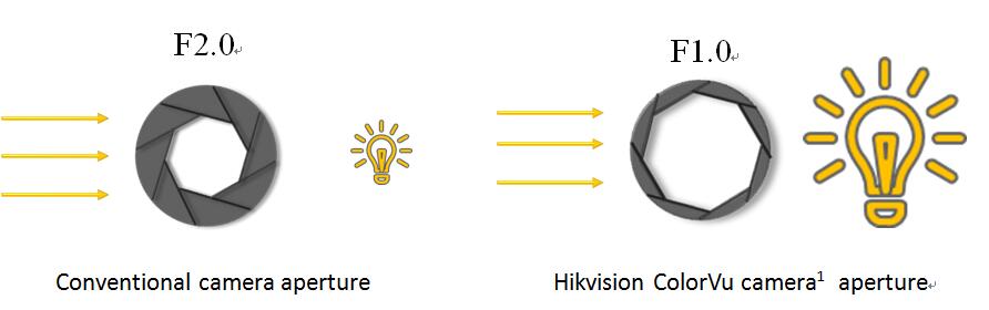 В основу оптической системы камер ColorVu лег объектив с входной апертурой F1.0, пропускающей практически в четыре раза больше света по сравнению со стандартной (размером F2.0), что помогло значительно увеличить его светосилу.
