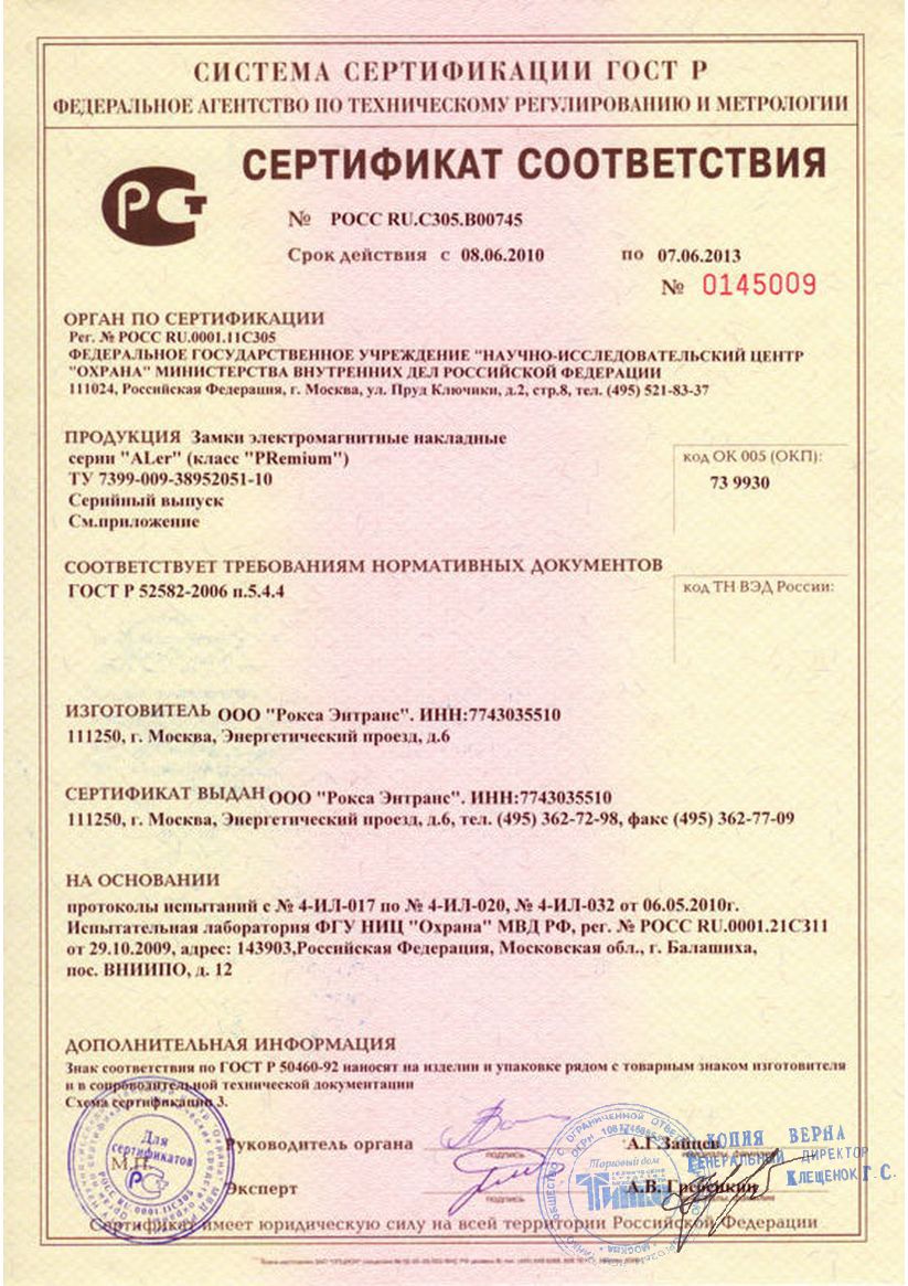 Контактное сопротивление: геркона - 0.2 Ом, устройства контроля 2 Ом