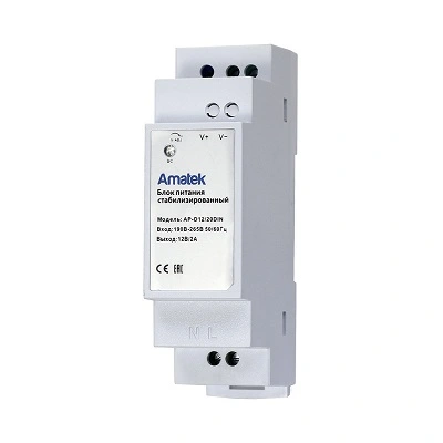 Электропитание от сети переменного тока 50 Гц напряжением от 190 В до 265В. Источник питания устанавливается на DIN-рейку.