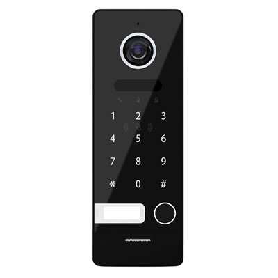 Вызывная панель IP видеодомофона одноабонентская 2Mp. Сенсорная клавиатура с подсветкой. Угол обзора: ширина 125°, высота 72°. Разрешение видео 1920х1080p. Выход управления замком NO (MAX AC/30В DC 4A). Считыватель Em-Marine. Количество карт: 1000. Количество паролей: 99. IK07; IP66; POE IEEE 802.3af/15В DC, 0.8A; -30°C...+60°C; 154х55х21 мм. Цвет корпуса: чёрный.