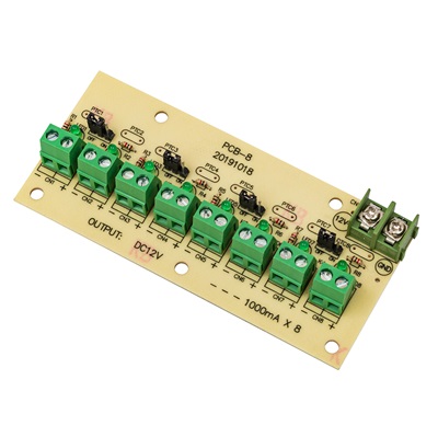 Устройство защитное коммутационное на 8 каналов, U-вх. 9...28 В, I-вых. задается перемычками 1 А на 8 каналов, 2 А на 4 канала; свет.индикация на каждый канал; t-раб. +10...+40°С, габ.размеры 110х50х11 мм