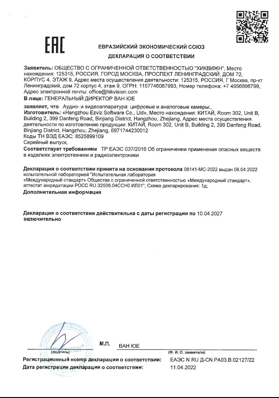 Декларация о соответствии CS-C8W (5MP,4ММ)