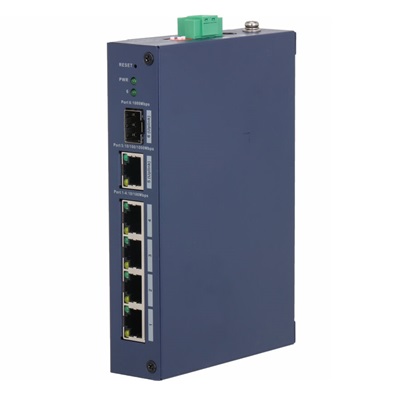 6-портовый коммутатор Dahua DH-CHS4106-4ET с функцией облачного управления Порты: 4 RJ45 10/100Мбит/с, 1 RJ45 10/100/1000Мбит/с (uplink), 1 SFP 1000Мбит/с (uplink); питание: 12В(DC); грозозащита: до 6кВ; рабочая температура: -30°С~+65°С; IP30, IK06; монтаж на DIN-рейку.