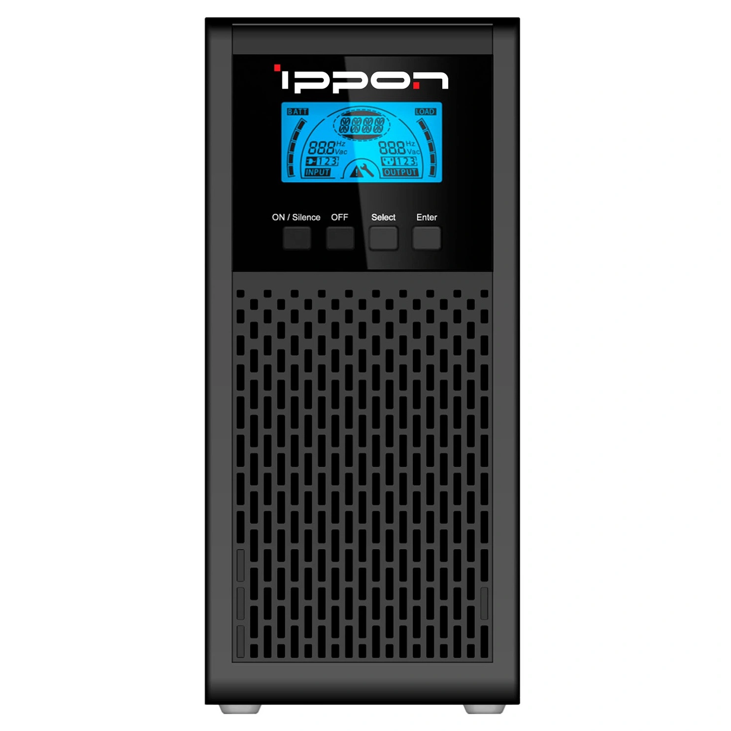 На фронтальной панели находятся кнопочная панель управления и ЖК-дисплей. На экран выводятся: режим работы, характеристики входящего и выходящего тока и другая важная информация.