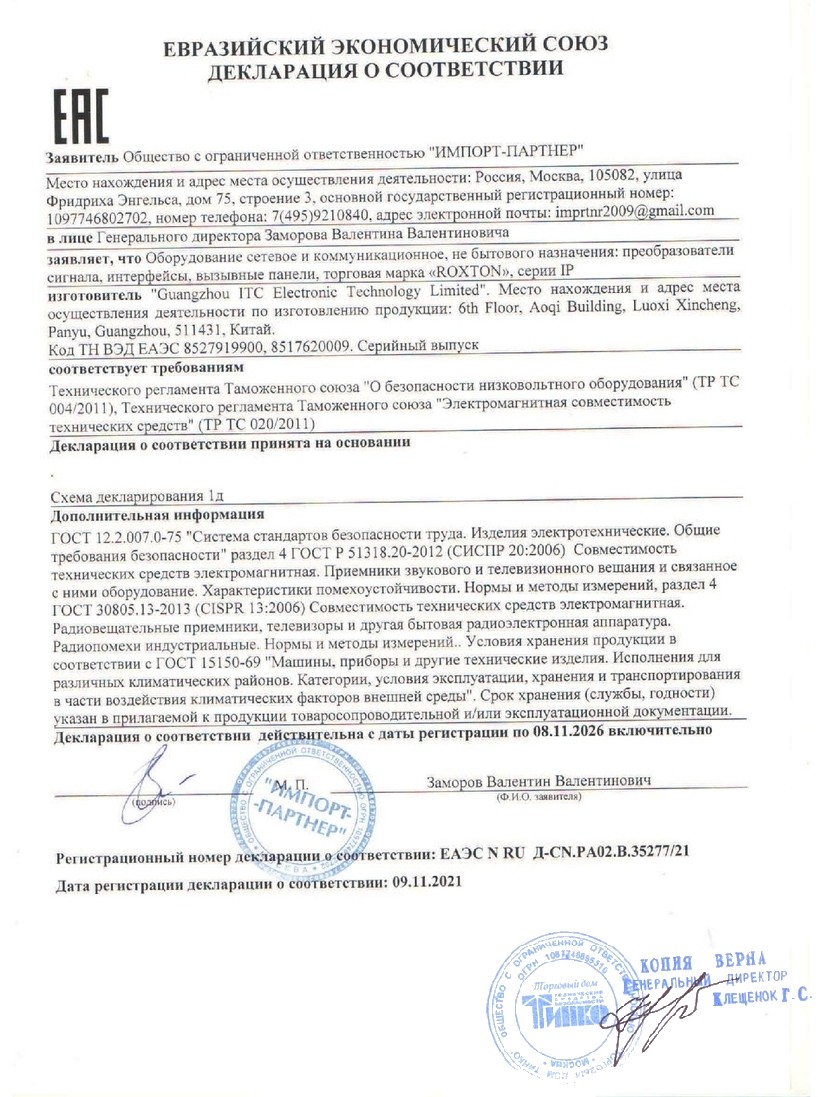 Напряжение питания: 220 (+10% -15%) В АС, 50 Гц
