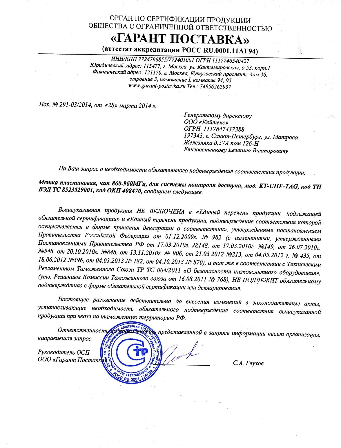 Сертификат соответствия KT-UHF-TAG EM