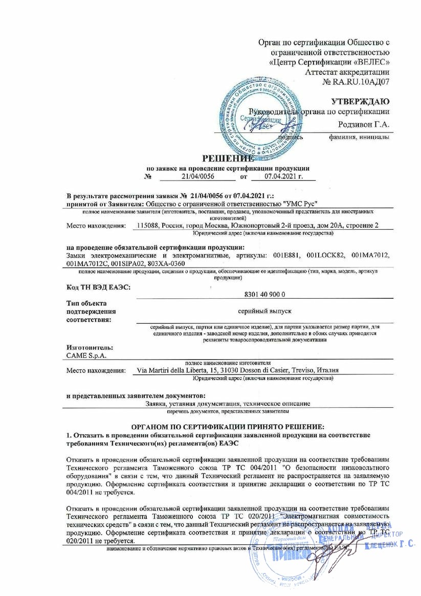 —LOCK82 CAME Электромеханические Замки