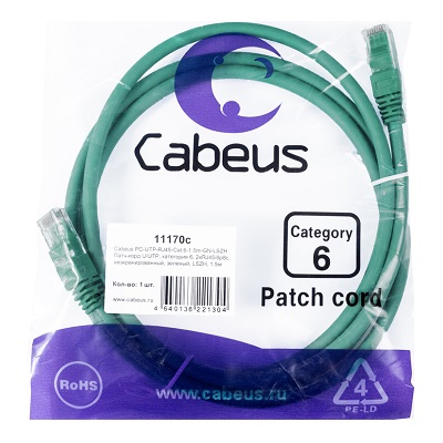 —PC-UTP-RJ45-Cat.6-1.5m-GN-LSZH Cabeus Патч Корды