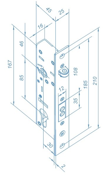 Габаритные размеры замка: 46×25×210 мм