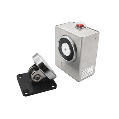 Электрический магнитный дверной держатель настенного/напольного монтажа; удерживающая сила 60 кг; отказоустойчивый; питание: DC12V / DC24V. Материал: нержавеющая сталь 304