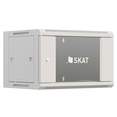 Настенный универсальный серверный шкаф предназначен для установки различного сетевого оборудования стандарта 19 дюймов (по ширине 485 мм), крепление которого соответствует требованиям ГОСТ 28601.2–90 (МЭК 60297). Пассивное и активное сетевое оборудование крепится на вертикальные 19" направляющие шкафа друг над другом. Доступ к оборудованию осуществляется со стороны передней двери, а также съемных боковых стенок шкафа.
