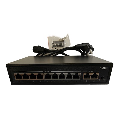 Коммутатор сетевой 11 портовый с РоЕ; 9xRJ45 PoE 10/100 Мбит/с, IEEE 802.3af/at; 2xRJ45 Uplink 100 Мбит/с; PoE бюджет до 120 Вт; поддержка режима EXTEND с дальностью связи до 250 м при скорости 10 Мбит/с; Watchdog, DHCP, VLAN; AC 220В, 125Вт; -10... +55°C; 200х118х44 мм.