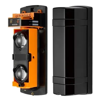 ИК активный, комплект (передатчик + приемник), н.з./н.р.контакты, 2-х лучевой, до 40м (улица) 120м (помещение), 4 частотных канала, цифрой дисплей, программируемое время прерывания луча, возможность выбора частотного канала, Uпит.12...24В (AC/DC), Iпотр.90мА (приемник + передатчик), IP65, tраб.-25...+60°С (без обогревателя), 212 x 80 x 74мм.