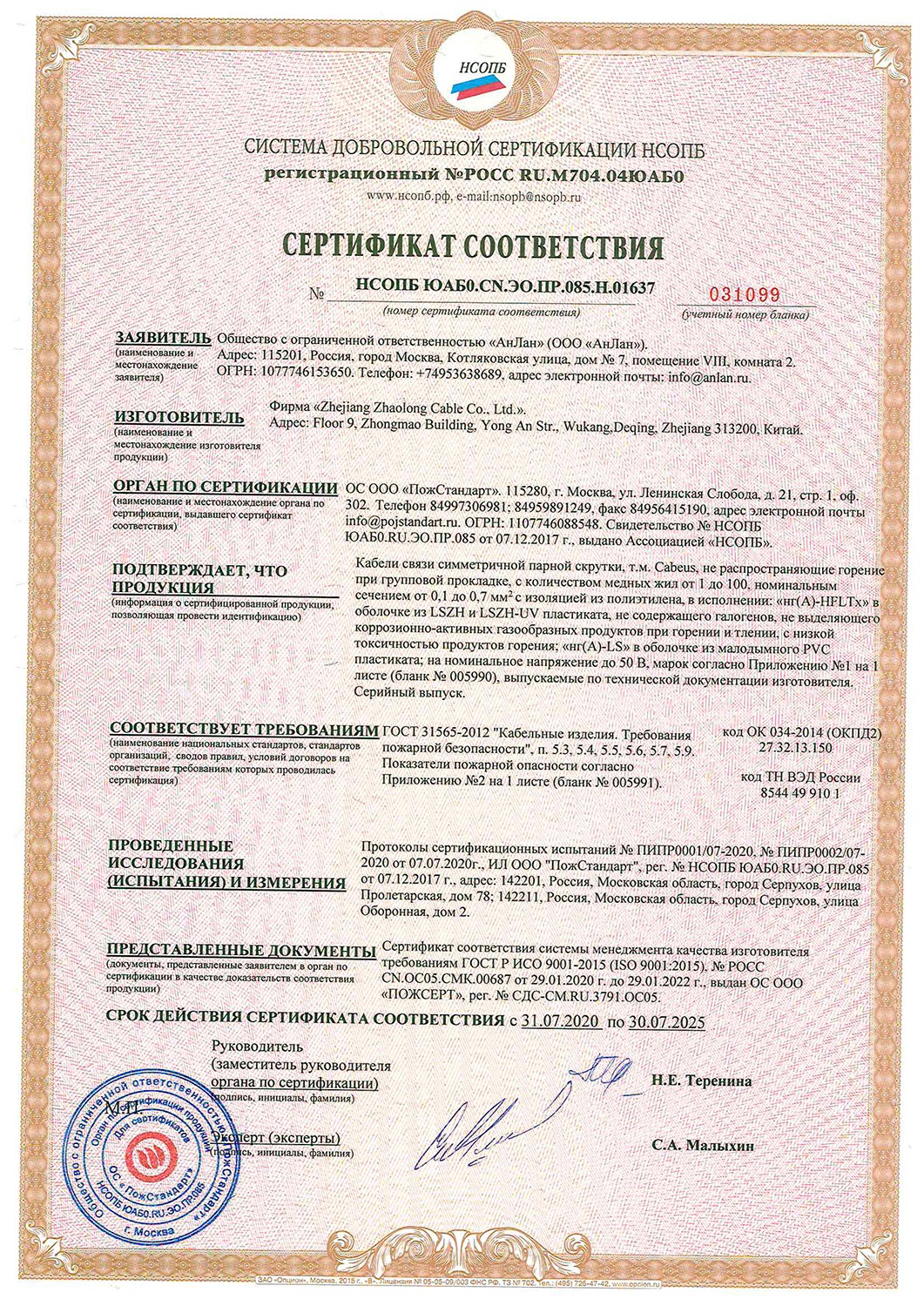 Минимальный радиус изгиба: не менее 10 диаметров кабеля