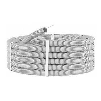 —Труба ПВХ гибкая гофр. д.20мм, лёгкая с протяжкой, 100м, цвет серый (ДКС) (91920) ДКС Труба Гофрированная