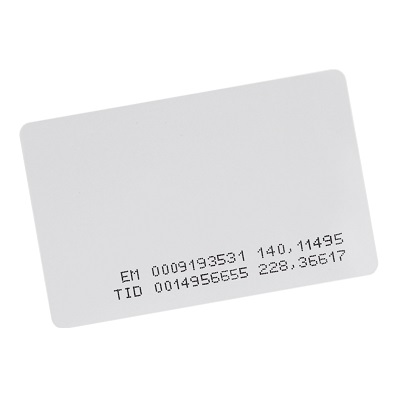 Бесконтактная карта доступа форматов EM-Marin (125 кГц) и UHF (866.9 МГц). Предназначена для идентификации пользователей и автотранспорта в системе контроля доступа по коду, содержащемуся в конкретной карте. Выполнена в тонком корпусе, подходящем под печать на специальном принтере. Габаритные размеры: 86x54x0,8 мм. Идентификационный номер нанесен на поверхность карты.