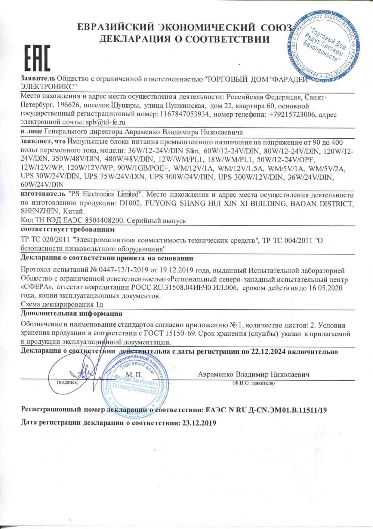 Коррекция мощности: PF≥0.96 при Uвх. 220В, полная нагрузка