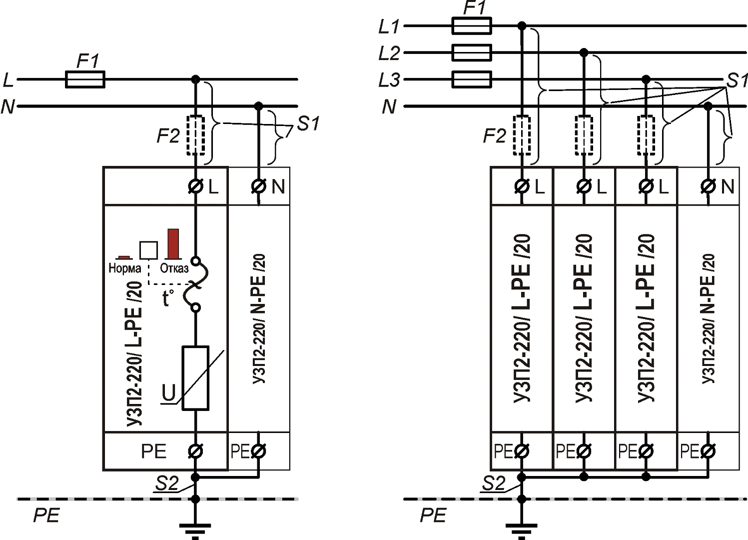 Максимальное длительное рабочее напряжение (Uc) ~275 В / 50 Гц