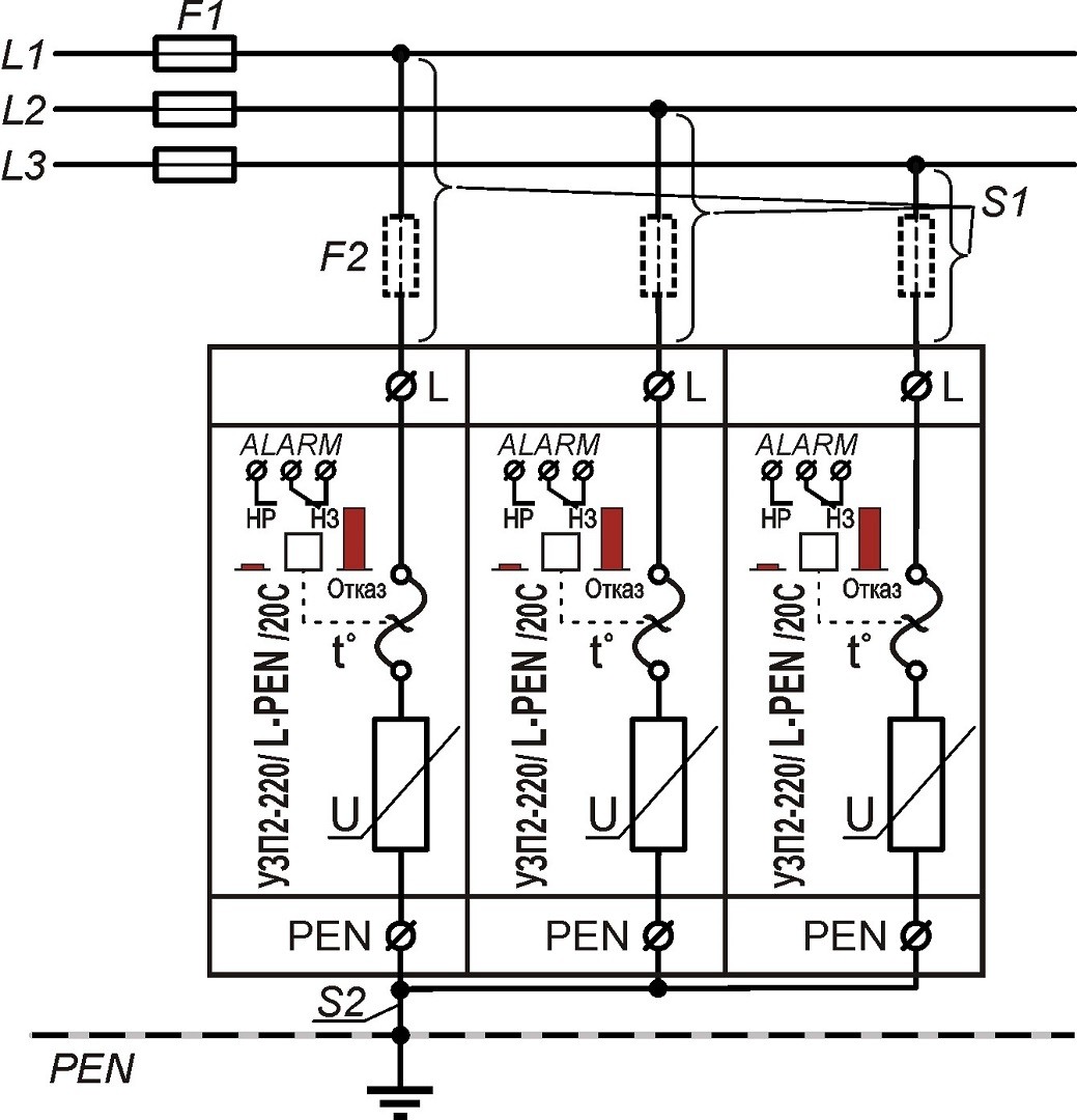 Максимальное длительное рабочее напряжение (Uc) ~275 В / 50 Гц