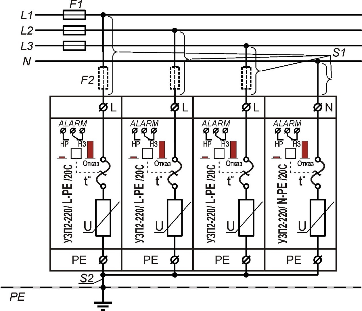 Максимальное длительное рабочее напряжение (Uc) ~275 В / 50 Гц
