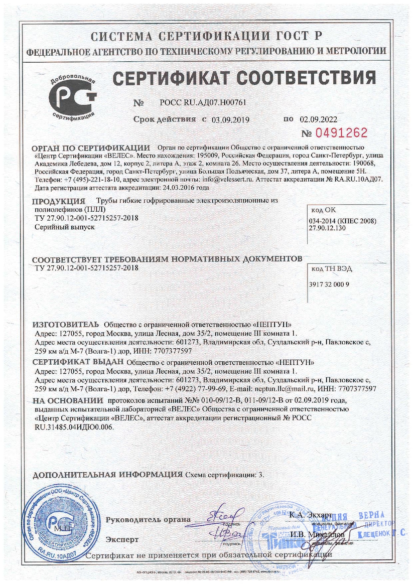 Сертификат Провод ШВВП 2х0,75 100м ГОСТ Falcon Eye