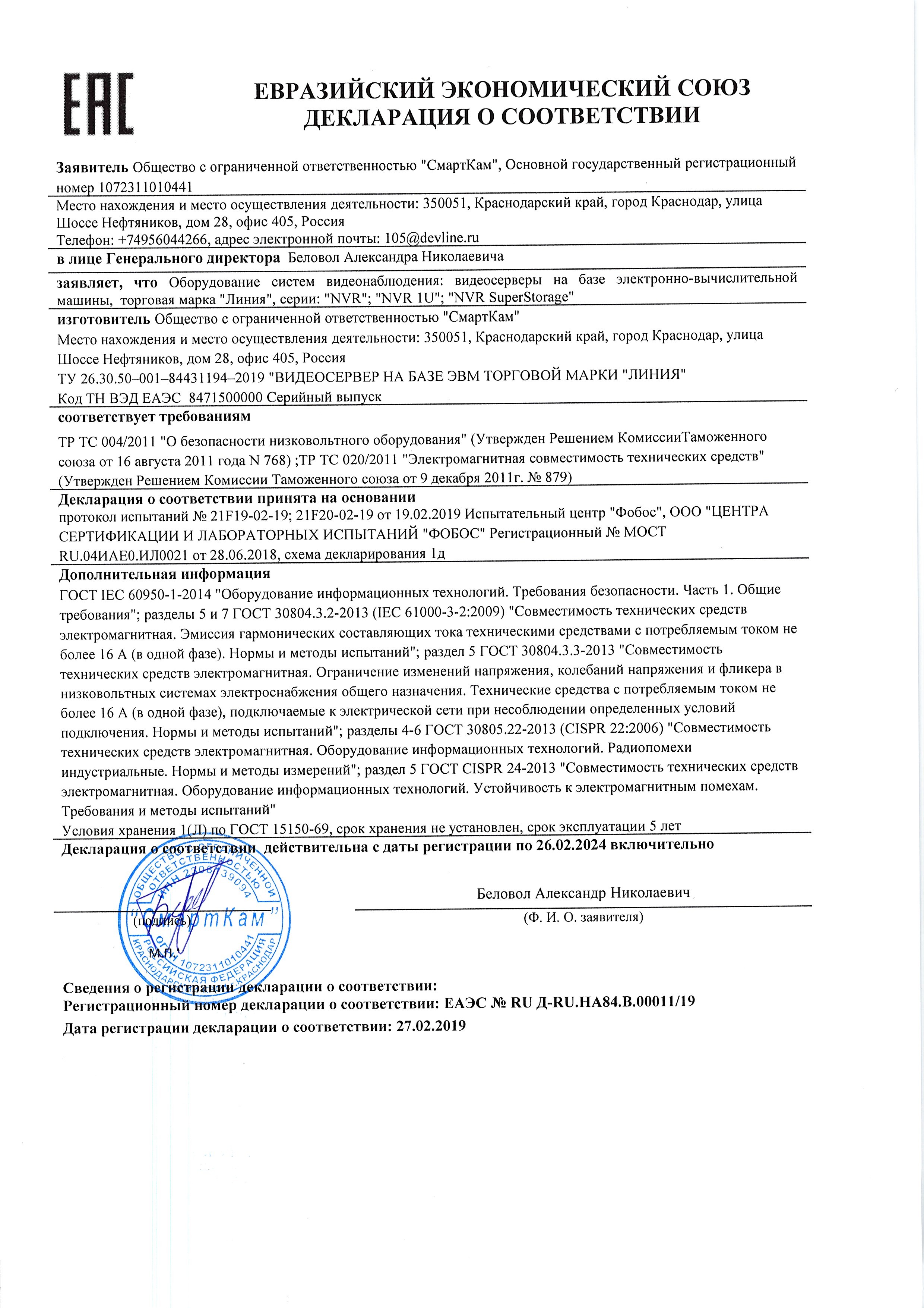 Сертификат Линия XVR 16 H.265