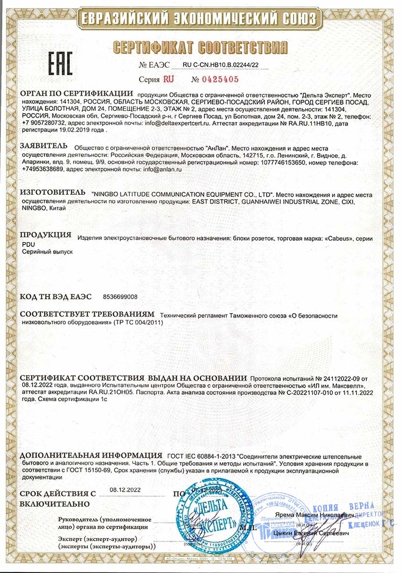 Сертификат PDU-6P-2EU