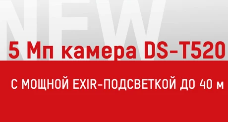 Обновилась линейка мультиформатных камер HiWatch. Новая модель DS-T520 оснащена матрицей с высокой чувствительностью и мощной EXIR-подсветкой дальностью до 40 м.