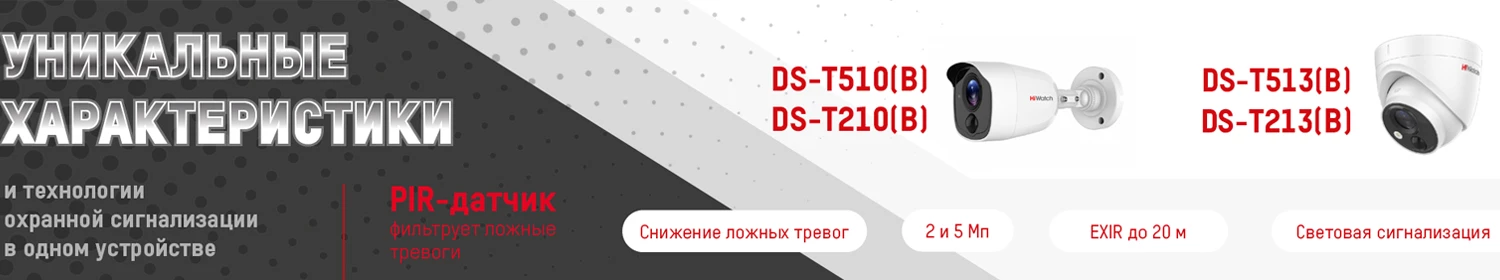 Ассортимент производителя HiWatch пополнился новыми моделями видеокамер со встроенной функцией сигнализации. Новинки получили индексы DS-T510(B), DS-T513(B), DS-T210(B) и DS-T213(B) и ряд новых функций, которые упрощают использование устройств и повышают их надежность.