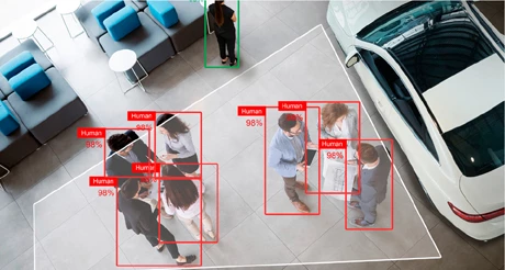 - Нарушение социальной дистанции. Встроенные алгоритмы в автоматическом режиме рассчитывают расстояние между людьми. Для предотвращения нарушения правил социального дистанцирования предусмотрена функция голосового оповещения.