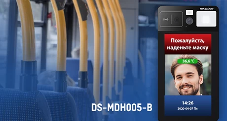 Компания Hikvision представляет DS-MDH005-B - мобильный комплекс, который обеспечит санитарную безопасность на транспорте. Этот терминал призван не допустить распространения инфекционных заболеваний. Его можно установить на любом виде общественного транспорта. Устройство быстро и бесконтактно измеряет температуру, а также определяет, есть ли на лице защитная маска.