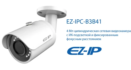 В новой камере работает КМОП-матрица разрешением 4 Мп с высокой чувствительностью. Доступны два варианта объективов: EZ-IPC-B3B4 (2.8 mm) и EZ-IPC-B3B4 (3.6 mm). В ночное время изображение формируется за счёт применения ИК-подсветки, эффективно работающей до 30 м. Мощность подсветки регулируется автоматически.