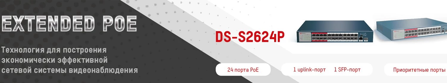 Новинка HiWatch – коммутатор DS-S2624P с поддержкой технологии Extended PoE