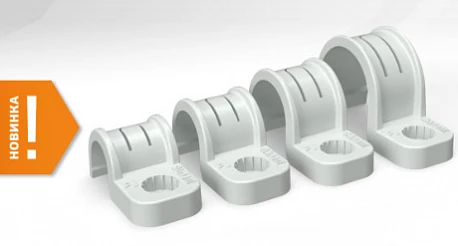 • Пластичный язычок с выступом оказывает сопротивление проскальзыванию гофрированных труб, а дополнительная ступенька удерживает смонтированную трубу в скобе;