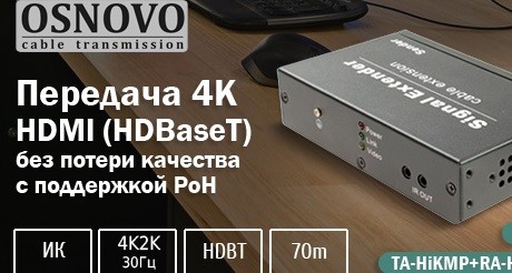 Osnovo выпустили новые комплекты, предназначенные для передачи сигналов HDMI и управляющих сигналов с использованием технологии HDBaseT. Этот протокол позволяет передавать аудио- и видеоданные высокой четкости, а также управляющие сигналы и электроэнергию для приемного устройства по стандартным кабелям категории Cat5/6.
