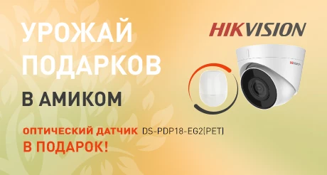 Только в ноябре при покупке любой модели IP-камер Hikvision ColorVu (цветное изображение даже в полной темноте) или PRO-серии HiWatch (увеличенная дальность EXIR-подсветки, видеоаналитика, улучшенное качество изображения и чувствительность) мы дарим вам оптический датчик DS-PDP18-EG2 дальностью обнаружения до 18 метров, без слепых зон.