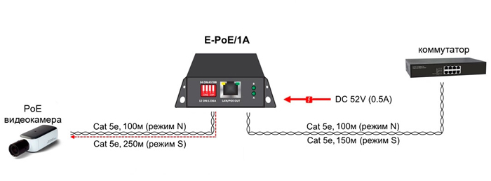 Этот коммутатор, несмотря на то, что не является управляемым, имеет множество функций. Максимальное расстояние, на которое могут передаваться данные и питание по стандарту РоЕ IEEE 802.3af/at/bt увеличено до 250 метров с использованием режима CCTV. К коммутатору можно подключить две мощные камеры, это возможно благодаря портам с повышенной до 60 Вт мощностью. При зависании РоЕ-устройств коммутатор автоматически перезагрузит их.