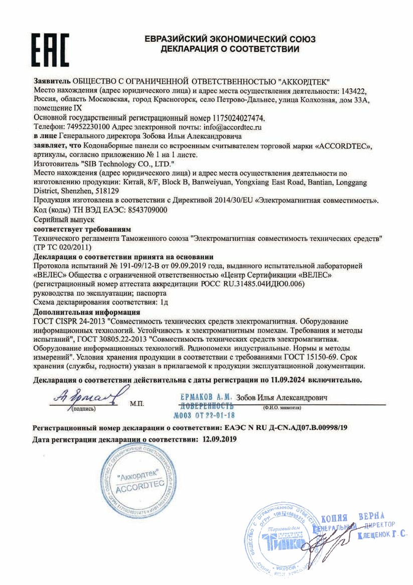 Дистанция считывания карт: 3-6 см