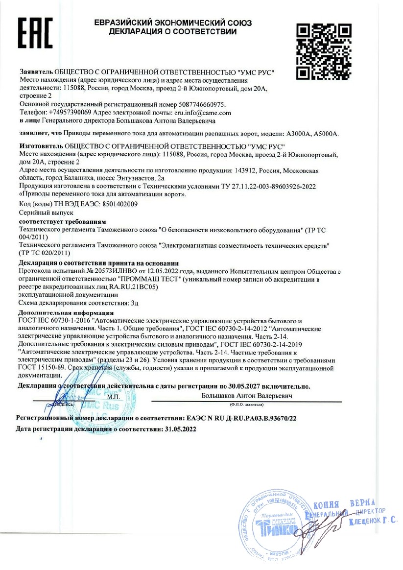 Все товары бренда CAME