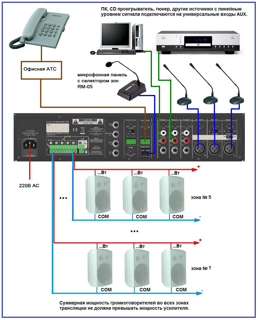 Выходное напряжение: 100В/70В и выход 4-16 Ом