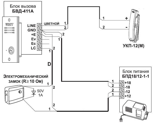 открывание замка при нажатии кнопки для открывания замка на УКП или мониторе;
