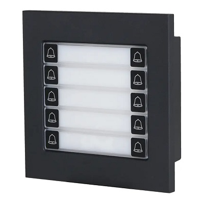 Вызывной модуль с 10-ю кнопками. Материал: Алюминиевый сплав; Питание DC 5В; Рабочая температура: -30°C~+65°C;