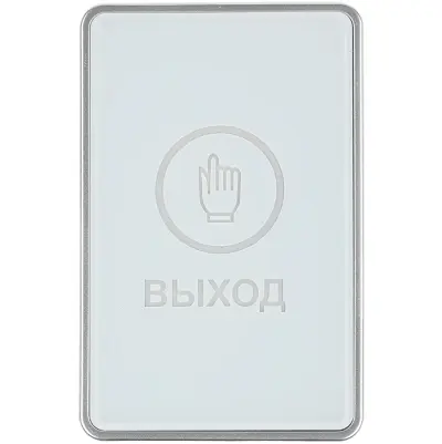 Сенсорная кнопка выхода, накладная, 2-цветная подсветка, 12В, полная группа (НО/НЗ), 86х50х20мм, цвет – белый.