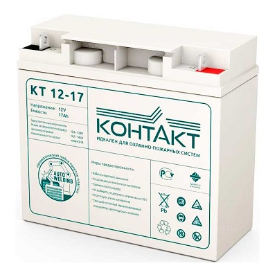 Бюджетная свинцово-кислотная герметизированная аккумуляторная батарея Контакт КТ 12-17, с напряжением 12 В, ёмкостью 12 Ач. Технология изготовления AGM с абсорбированным электролитом в стекловолоконном сепараторе, идеальны для использования в охранно-противопожарных, а также мелком слаботочном оборудовании (фонари, ККМ, весы). Необслуживаемая VRLA батарея производителя Контакт- лучшее соотношение цены и качества, оптимальны для использования как в циклическом, так и в буферном режиме, но буферный режим эксплуатации более предпочтителен. Расчетный срок службы 3-5 лет.