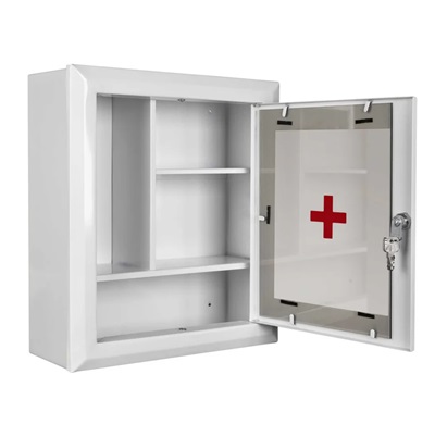 Покрытие порошковой полиэфирной краской, цвет белый. На внешней стороне дверцы изображён красный крест.