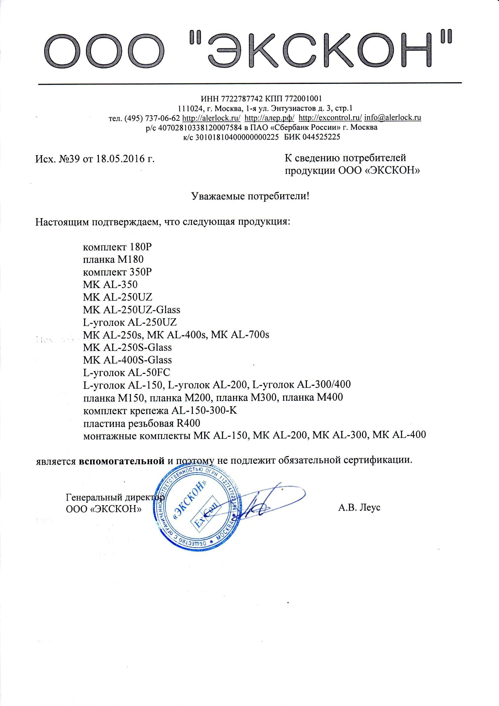 Сертификат MK AL-350FB-M-03