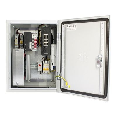 OS-34TB1(SW-80802-IM) Уличный Web-управляемый коммутатор с термостабилизацией и резервным питанием на базе уличной станции OSNOVO OS-34TB1.Порты: 2 x GE (10/100/1000BASE-T) с PoE (до 90W) + 6 x GE (10/100/1000BASE-T) с PoE (до 30W)+ 2 x GE SFP (1000Base-X).Суммарная мощность PoE до 240W. Режим антизависания PoE устройств. Металлический шкаф (ШxВxГ): 300х400х210мм, питание AC195-265V. АКБ 48В(2,2Ач)), оптический кросс, исполнение IP66. Рабочая температура (температура окружающей среды): -40…+50°С, температура внутри станции -7…+55°С.